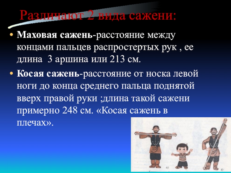 Слайд 8Различают 2 вида сажени: