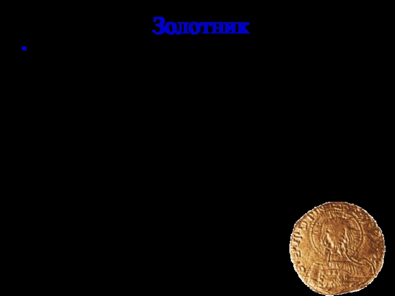 Святославича существовала монета, которую называли "златник". С конца XVI в. золотник служит единицей массы драгоценных металлов и камней. До 1927 г. в России была принята золотниковая система определения содержания драгоценных металлов(золота, серебра, платины) в сплаве, так называемая проба. Например, вещь 84-й пробы, изготовленная из серебра, содержит 84 золотника, или 84 х 4,3 = 361,2 (г)чистого серебра в фунте сплава. В настоящее время проба выражается в метрической системе.