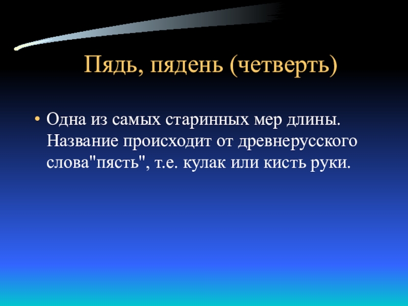Слайд 12Пядь, пядень (четверть)