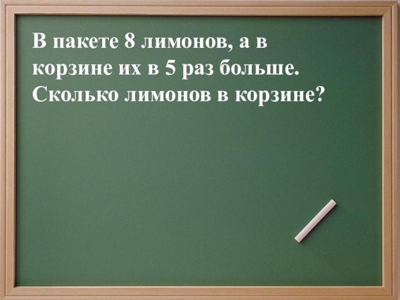 Слайд 4В пакете 8 лимонов, а в корзине их в 5 раз