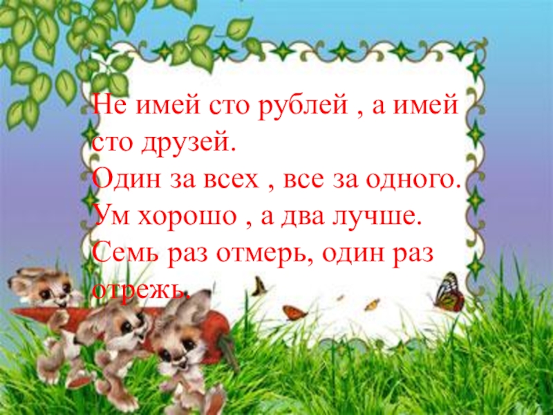 Слайд 5Не имей сто рублей , а имей сто друзей.