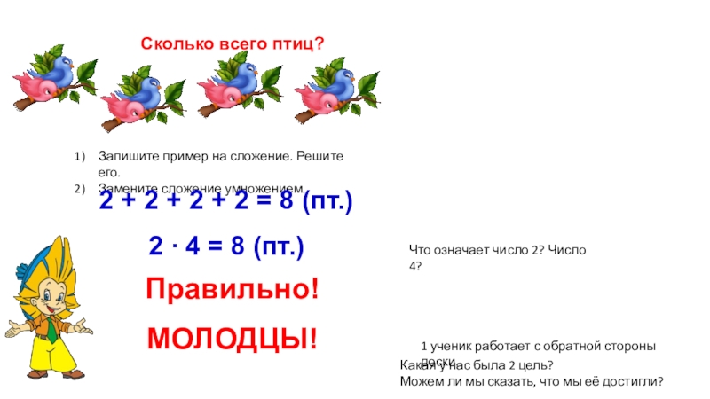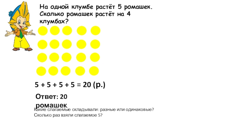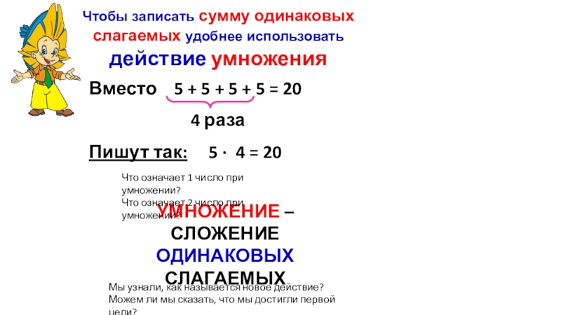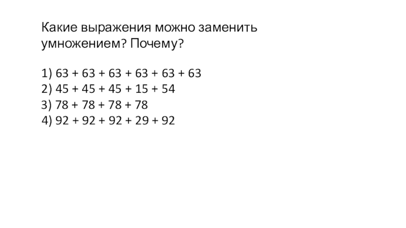 Каким примером можно заменить пример на сложение одинаковых слагаемых?