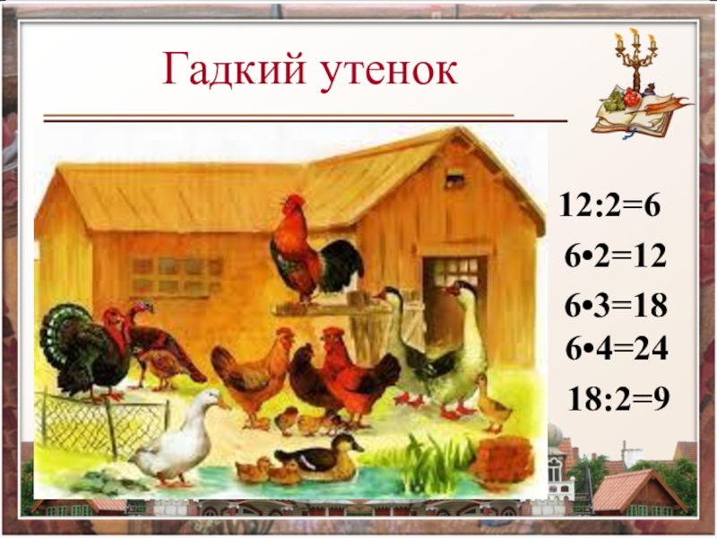 Гадкий утенок12:2=66•2=126•3=186•4=2418:2=9