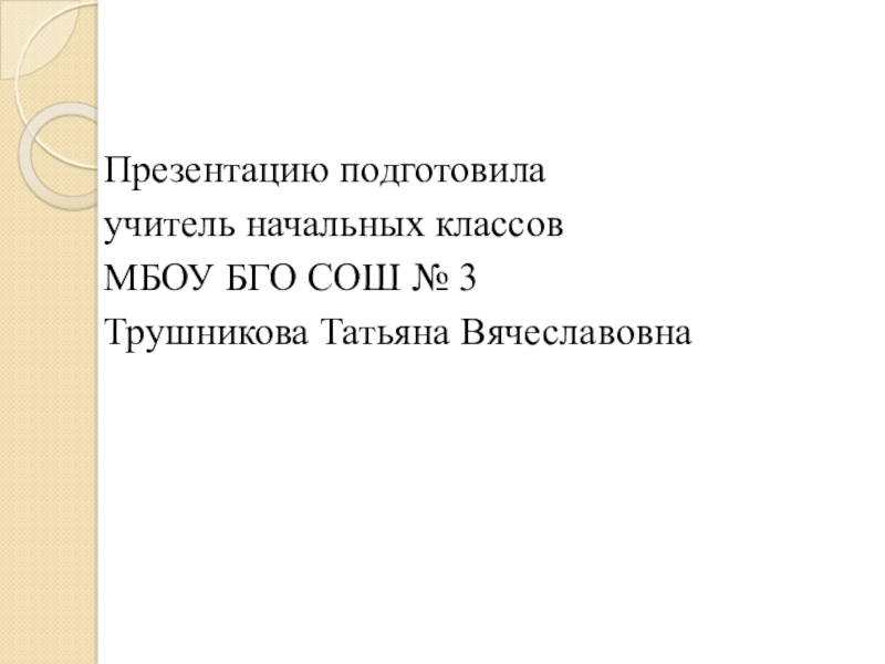 Презентацию подготовилаучитель начальных классов МБОУ БГО СОШ № 3 Трушникова Татьяна Вячеславовна