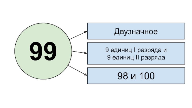 99Двузначное98 и 1009 единиц I разряда и 9 единиц II разряда