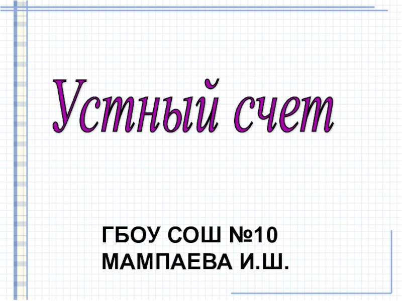 Устный счет ГБОУ СОШ №10 МАМПАЕВА И.Ш.