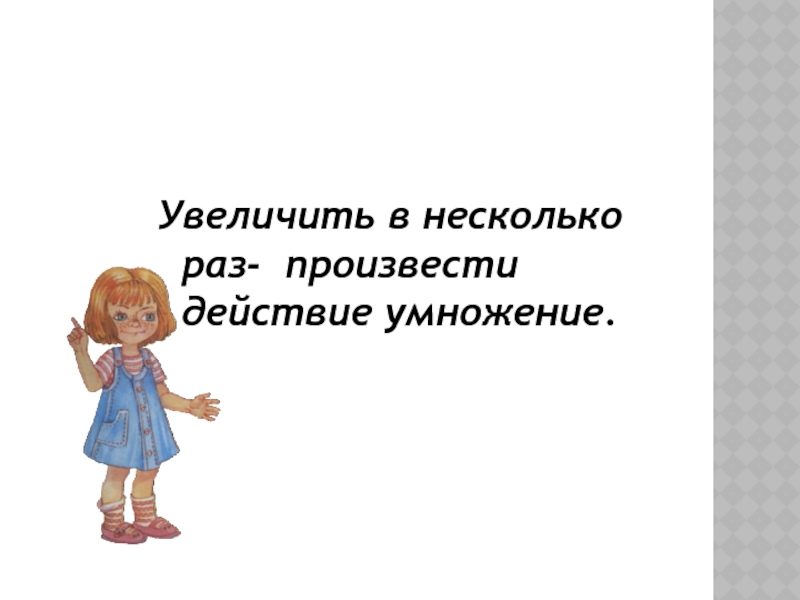 Слайд 13Увеличить в несколько раз- произвести действие умножение.