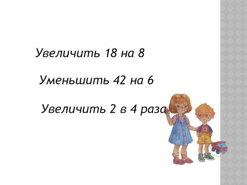 Увеличить 18 на 8Уменьшить 42 на 6Увеличить 2 в 4 раза