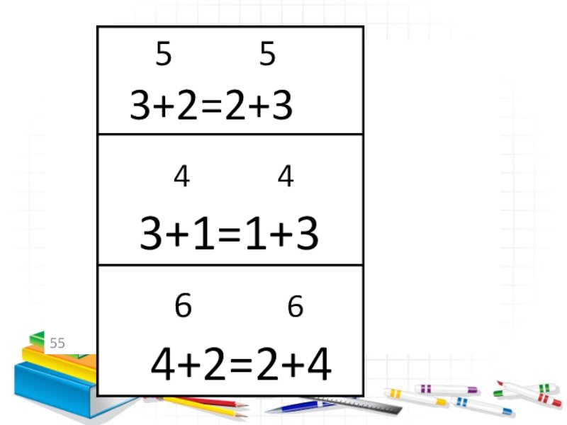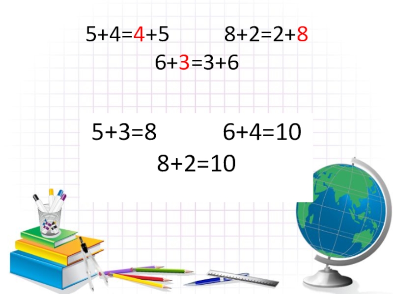 Слайд 185+4=4+5 8+2=2+8 6+3=3+6