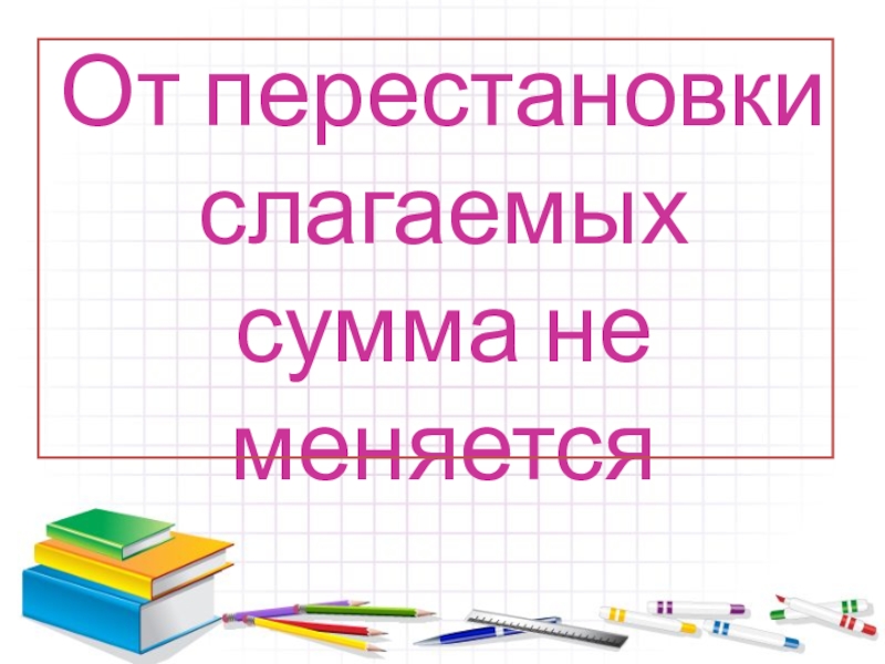 Слайд 8 От перестановки слагаемых сумма не меняется
