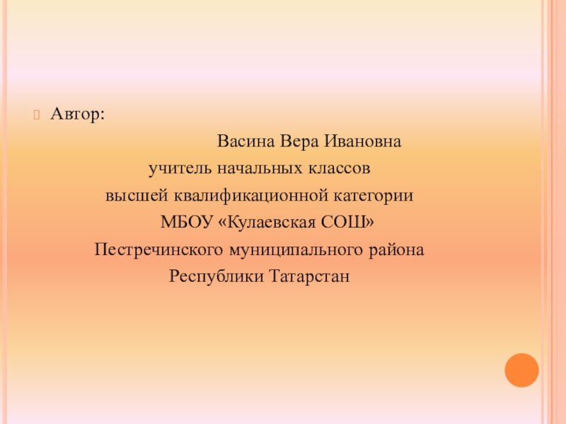 Автор:            Васина Вера Ивановнаучитель начальных классов