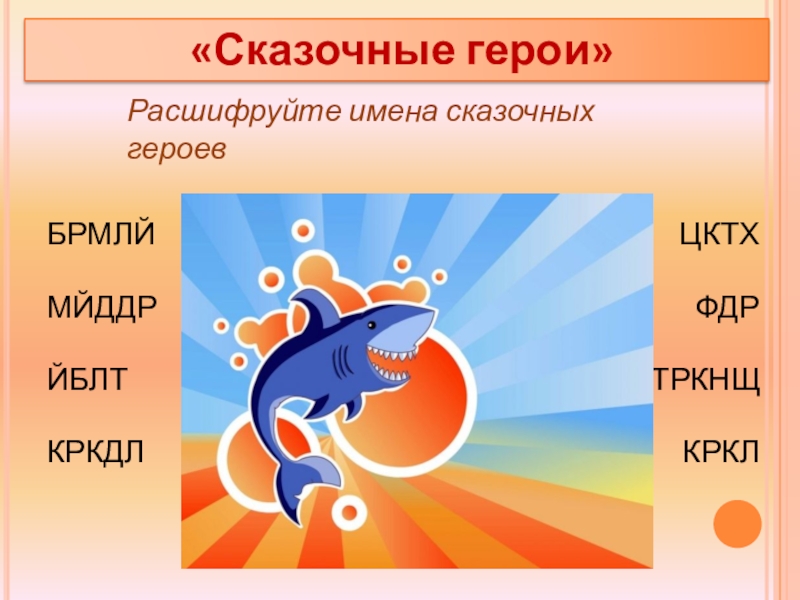 Расшифруйте имена сказочных героев «Сказочные герои»