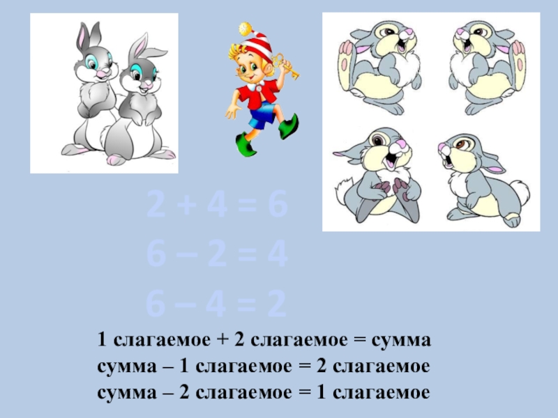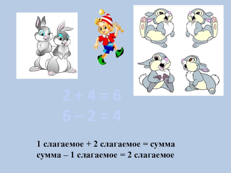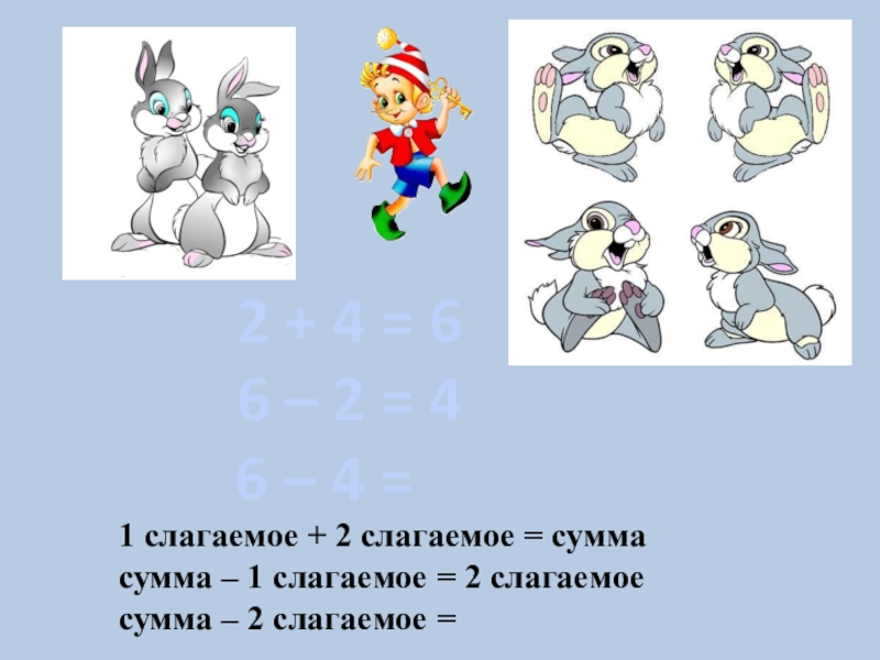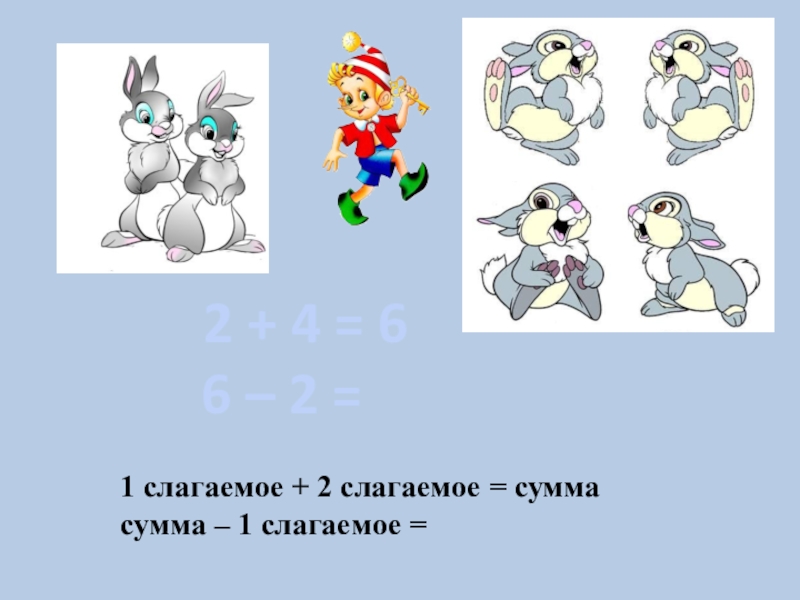 2 + 4 = 66 – 2 = 46 – 4 =1 слагаемое + 2 слагаемое =