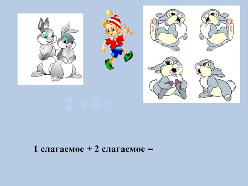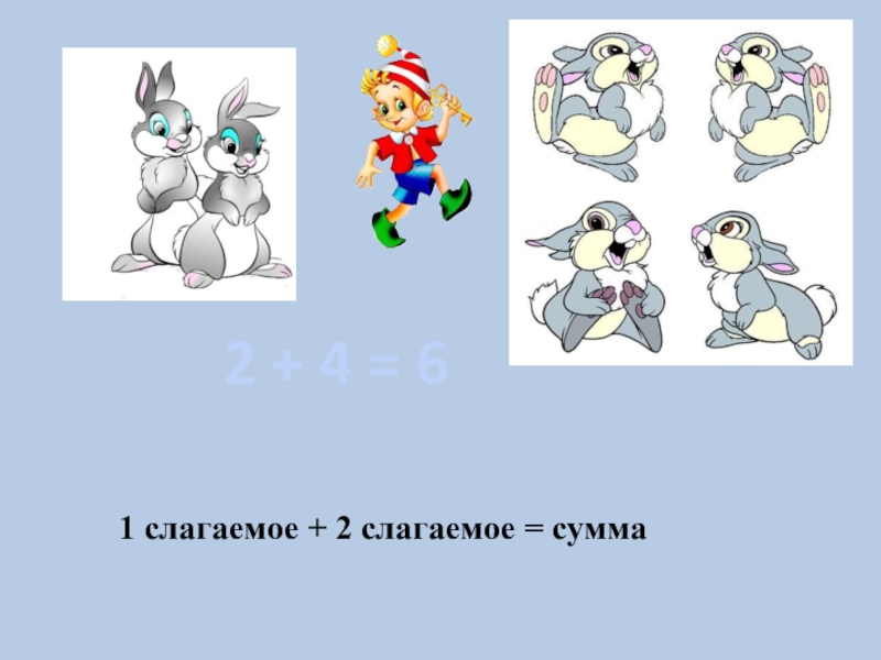 2 + 4 =1 слагаемое + 2 слагаемое =