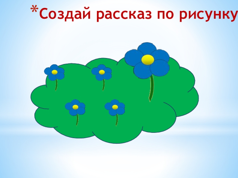 На лесной полянке выросли четыре маленькие и одна большая незабудка. Красивые были цветы !