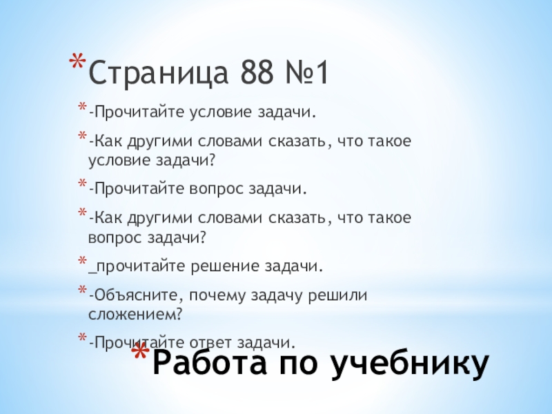 Урок математики в 1 классе «Задача»