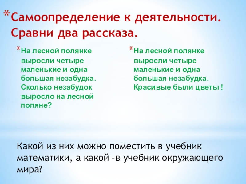 Какой из них можно поместить в учебник математики, а какой –в учебник окружающего мира?