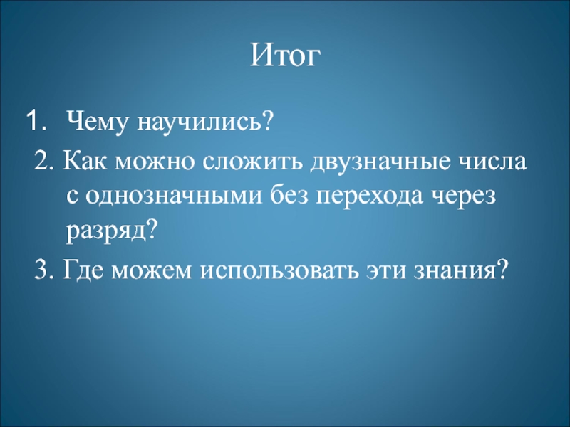 2. Научились складывать двузначные числа