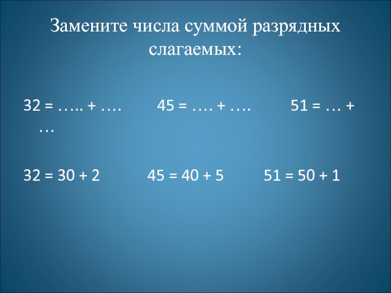 1. Закрепим свои умения заменять двузначные числа суммой разрядных