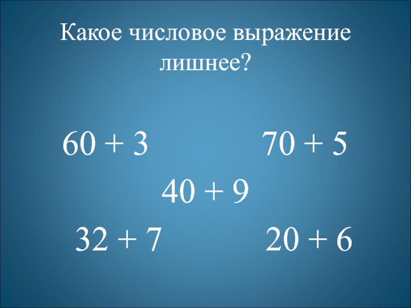 Слайд 13Какое числовое выражение лишнее?