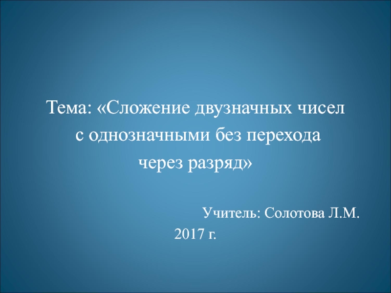 Тема: «Сложение двузначных чисел