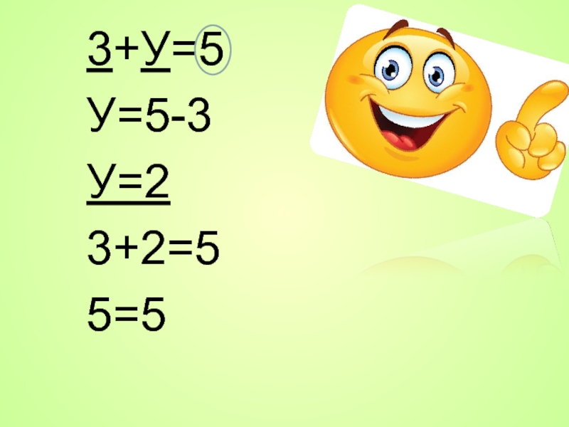 3+У=5  У=5-3  У=2  3+2=5  5=5