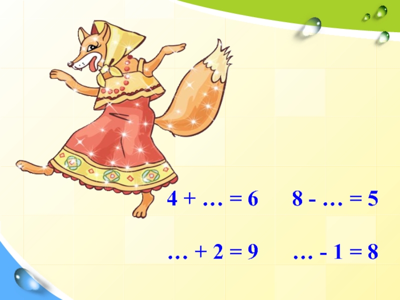 4 + … = 6   8 - … = 5 … + 2 = 9