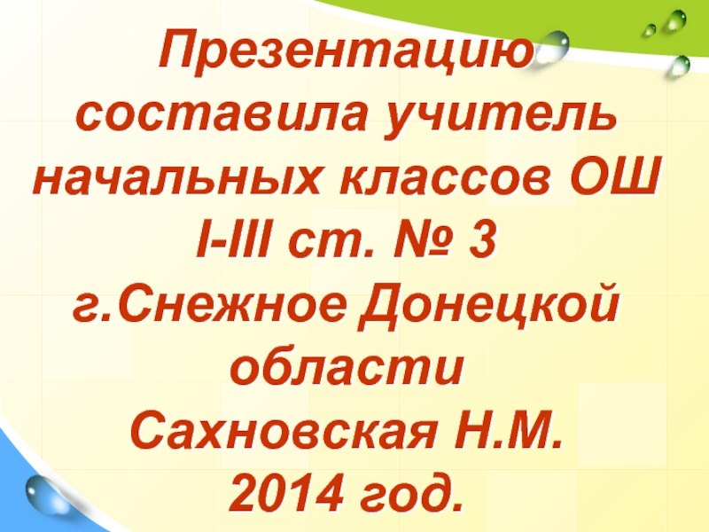 Презентацию составила учитель  начальных классов ОШ І-ІІІ ст. № 3  г.Снежное Донецкой области  Сахновская