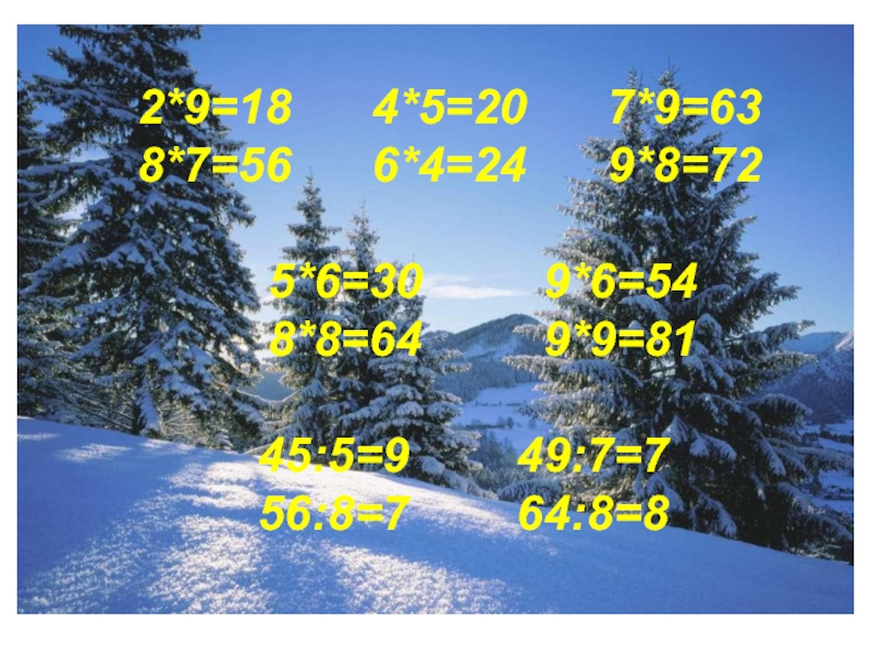64:8=82*9=18   4*5=20   7*9=638*7=56   6*4=24   9*8=72   5*6=30