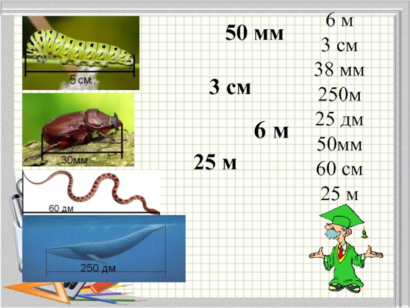 Слайд 26 м 3 см 38 мм 250м 25 дм 50мм 60 см 25 м