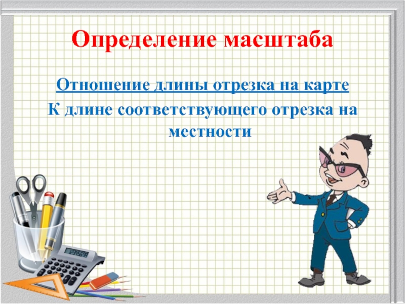 Определение масштабаОтношение длины отрезка на картеК длине соответствующего отрезка на местности