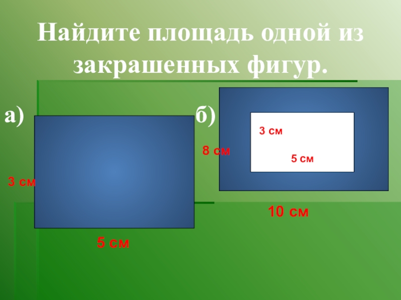 а) S= 6˟8=48;б)S1=8˟10=80, S2=3˟5=15, S1-S2==80-15=65
