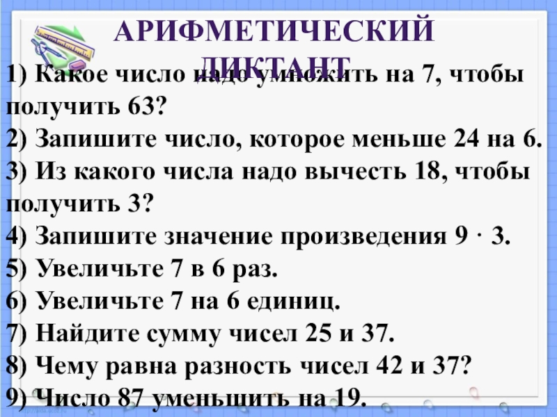 АРИФМЕТИЧЕСКИЙ ДИКТАНТ