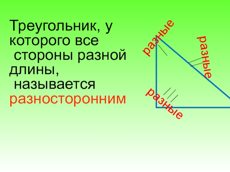 Треугольники, у которых все стороны разной длины, называются разносторонними треугольниками