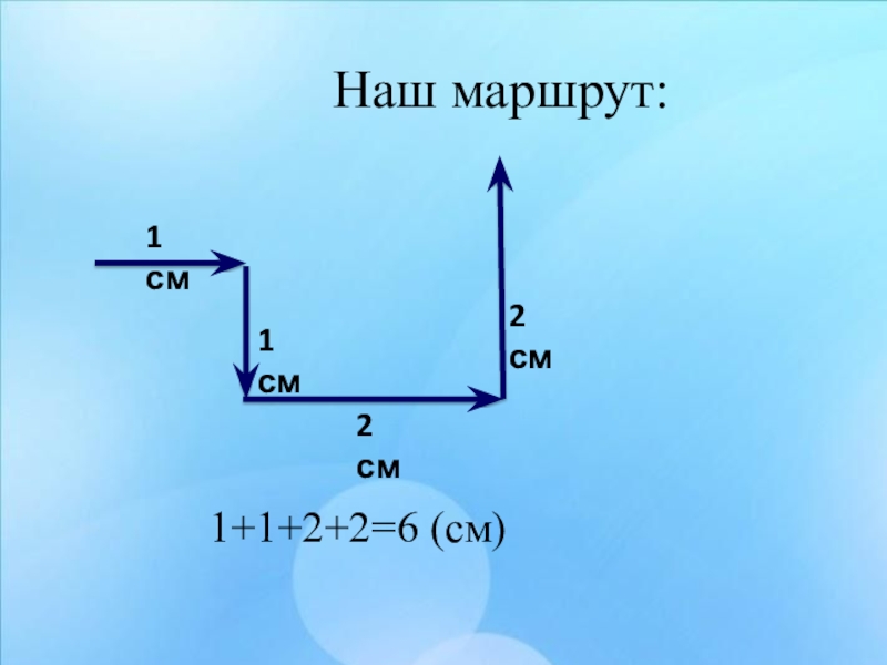 Наш маршрут:1 см1 см2 см1+1+2+2=6 (см)2 см