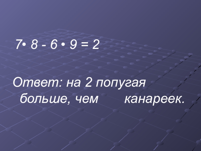 7• 8 - 6 • 9 = 2Ответ: на 2 попугая больше, чем канареек.