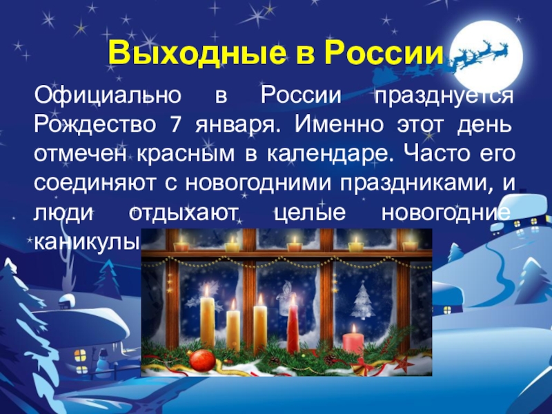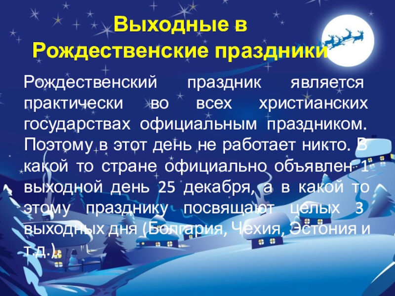 Слайд 6Выходные в Рождественские праздники