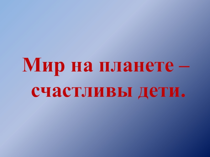 Нам нужен мир на голубой планете, Его хотят и взрослые, и дети.  Им хочется, проснувшись на
