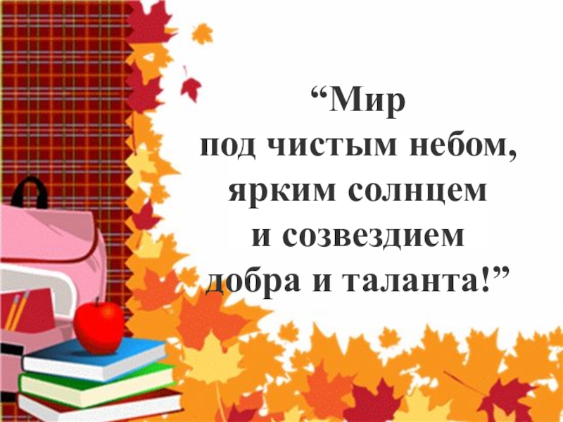 “Мир под чистым небом, ярким солнцем и созвездием добра и таланта!”
