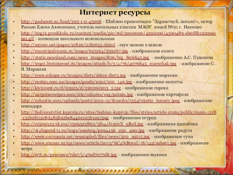 Интернет ресурсы