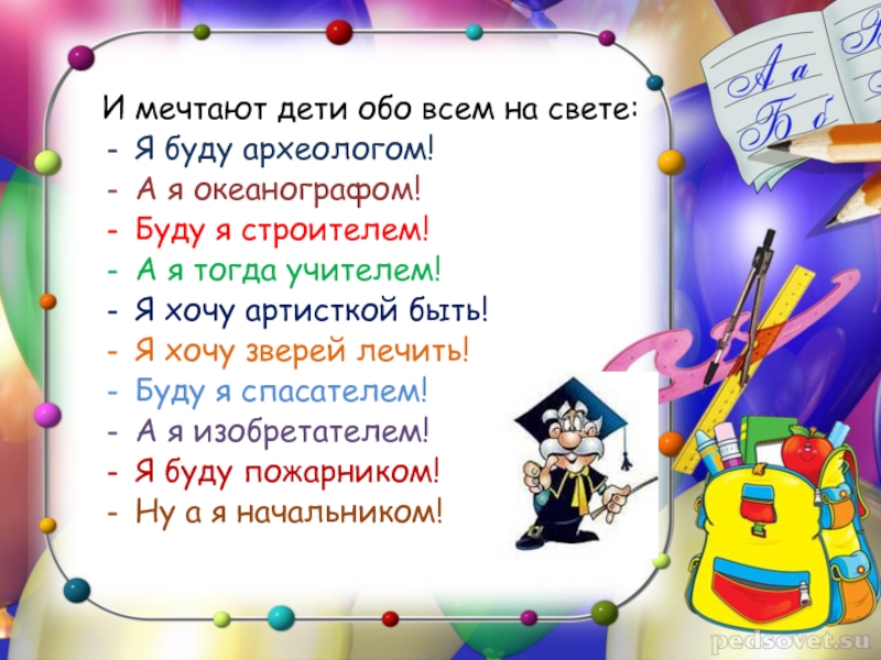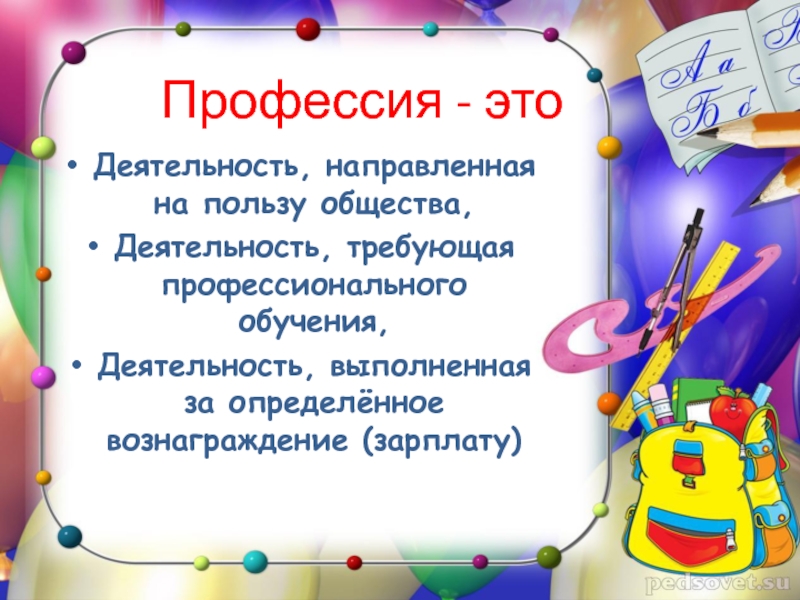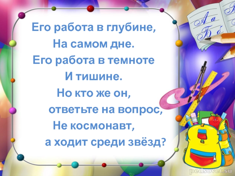 Это сайт презентаций, где можно хранить и обмениваться своими презентациями, докладами, проектами, шаблонами в формате PowerPoint с другими пользователями. Мы помогаем школьникам, студентам, учителям, преподавателям хранить и обмениваться учебными материалами.