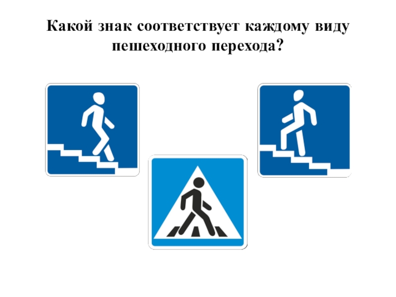 Слайд 5Какой знак соответствует каждому виду пешеходного перехода?