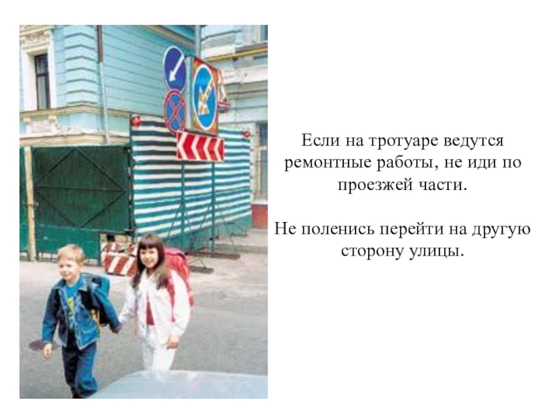 Слайд 23Если на тротуаре ведутся ремонтные работы, не иди по проезжей части.