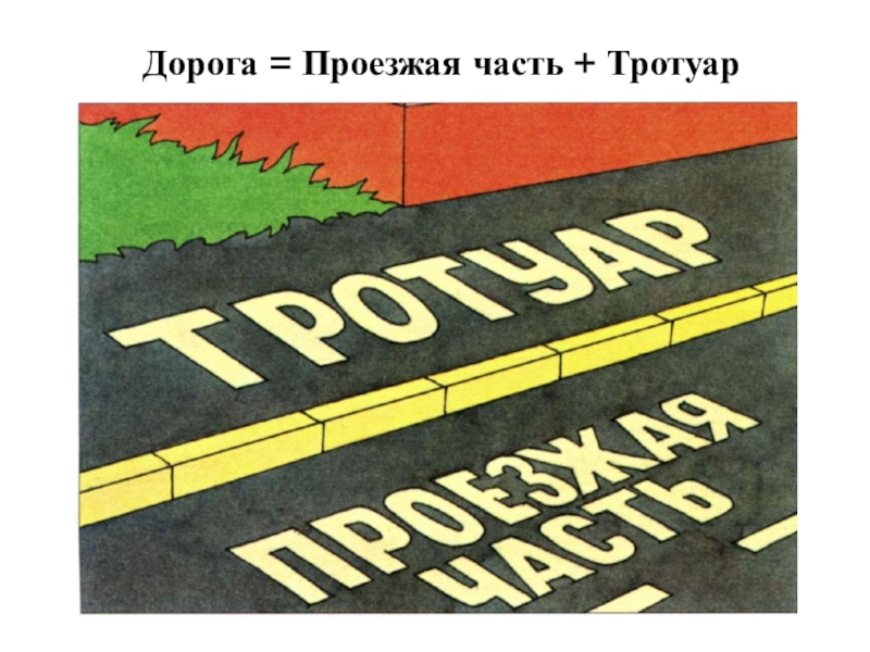 Слайд 2Дорога = Проезжая часть + Тротуар