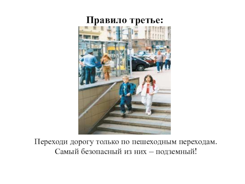 Правило третье:Переходи дорогу только по пешеходным переходам.Самый безопасный из них – подземный!