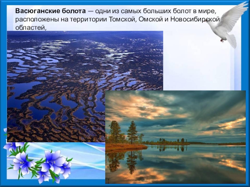 Слайд 14Васюганские болота — одни из самых больших болот в мире, расположены на