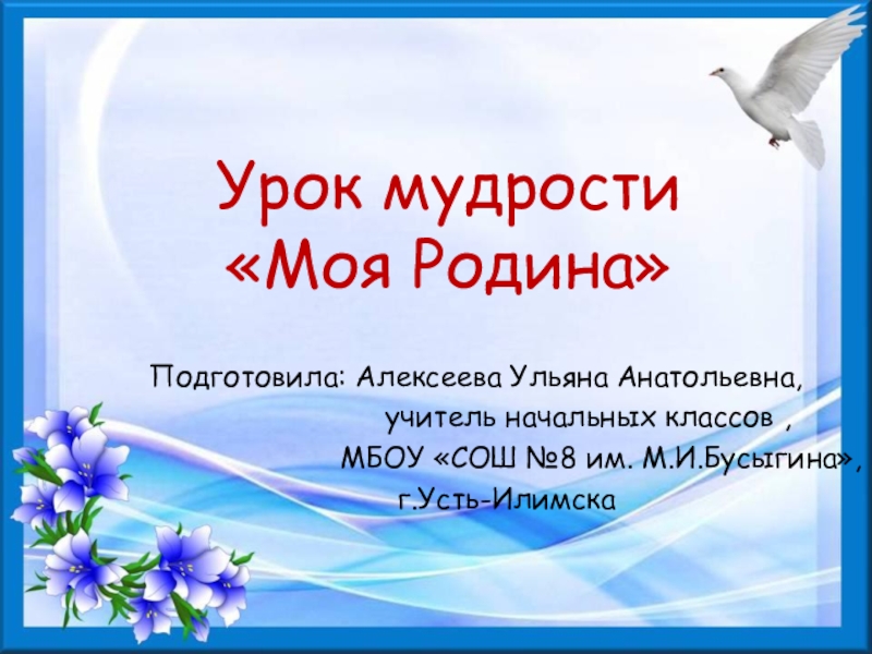 матушка Россия. Отечеством мы зовём Россию потому, что в ней жили испокон веку отцы и деды наши. Родиной мы зовём её потому, что в ней мы родились, в ней говорят родным нам языком и всё в ней для нас родное; матерью - потому, что она вскормила нас своим хлебом, вспоила своими водами, выучила своему языку; как мать, защищает и бережёт нас от всяких врагов:"