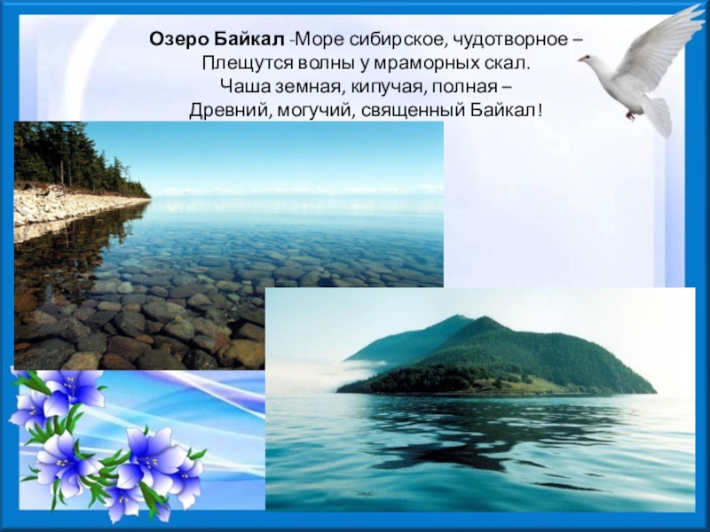 Слайд 8Озеро Байкал -Море сибирское, чудотворное –