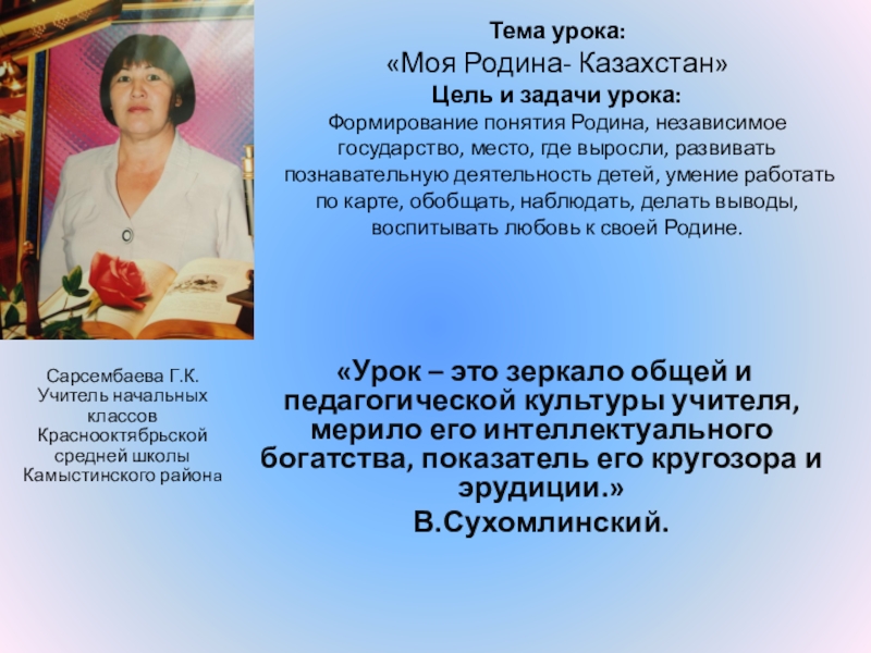 «Урок – это зеркало общей и педагогической культуры учителя, мерило его интеллектуального богатства, показатель его кругозора и эрудиции.»