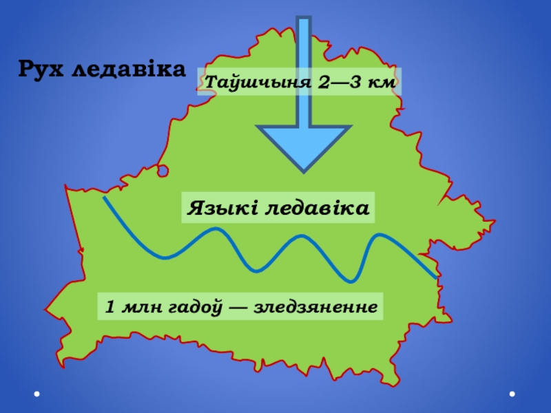 Рух ледавікаТаўшчыня 2—3 кмЯзыкі ледавіка1 млн гадоў — зледзяненне